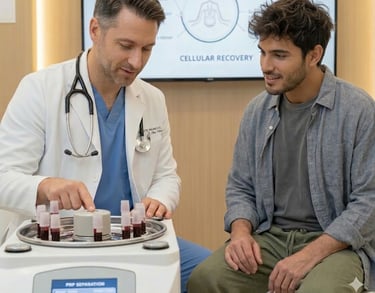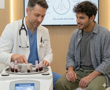 "Natural Tissue Repair & Rejuvenation" Harness your body’s own healing potential with Platelet-Rich Plasma (PRP) therapy. We use advanced centrifugation technology to concentrate your growth factors, providing a non-surgical solution for joint recovery and tissue rejuvenation.