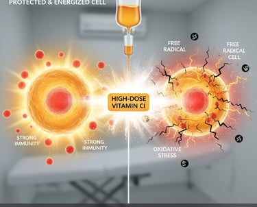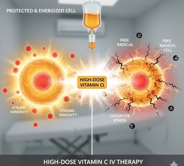 We provide medical-grade Vitamin C infusions tailored to your specific immune and cellular needs. High-dose Vitamin C (HDVC) acts as a powerful pro-oxidant to support the body’s natural defense mechanisms and detoxification pathways.