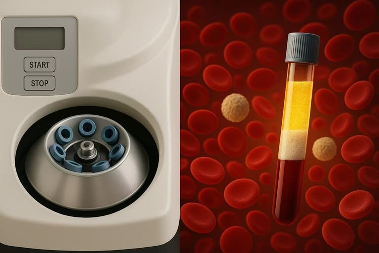 A small sample of your blood is drawn, processed in a centrifuge to separate growth-factor-rich plasma, and then injected directly into the injured or inflamed area.