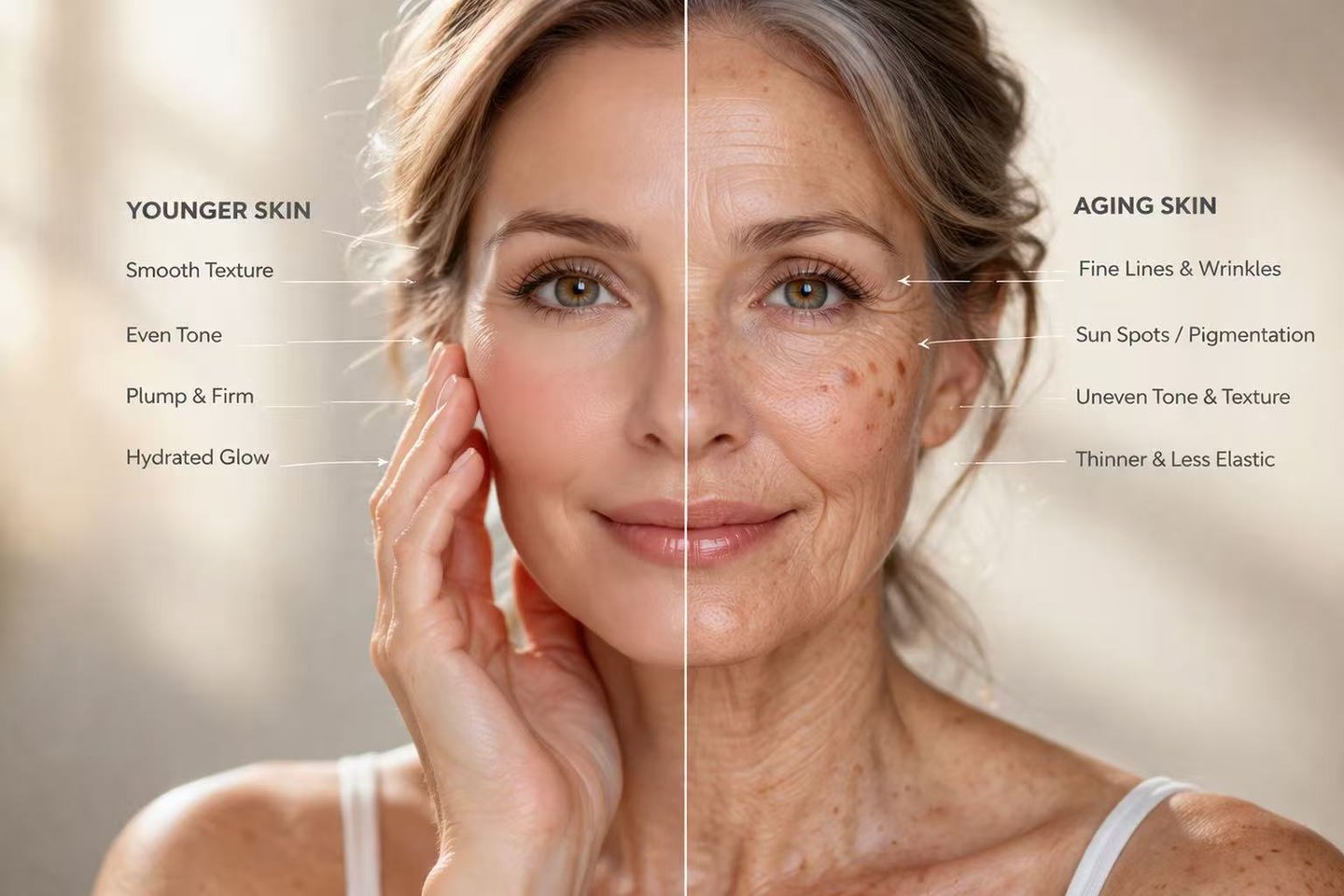 The Result: Thinning skin, fine lines, dark circles under the eyes, and a loss of that youthful "bounce."